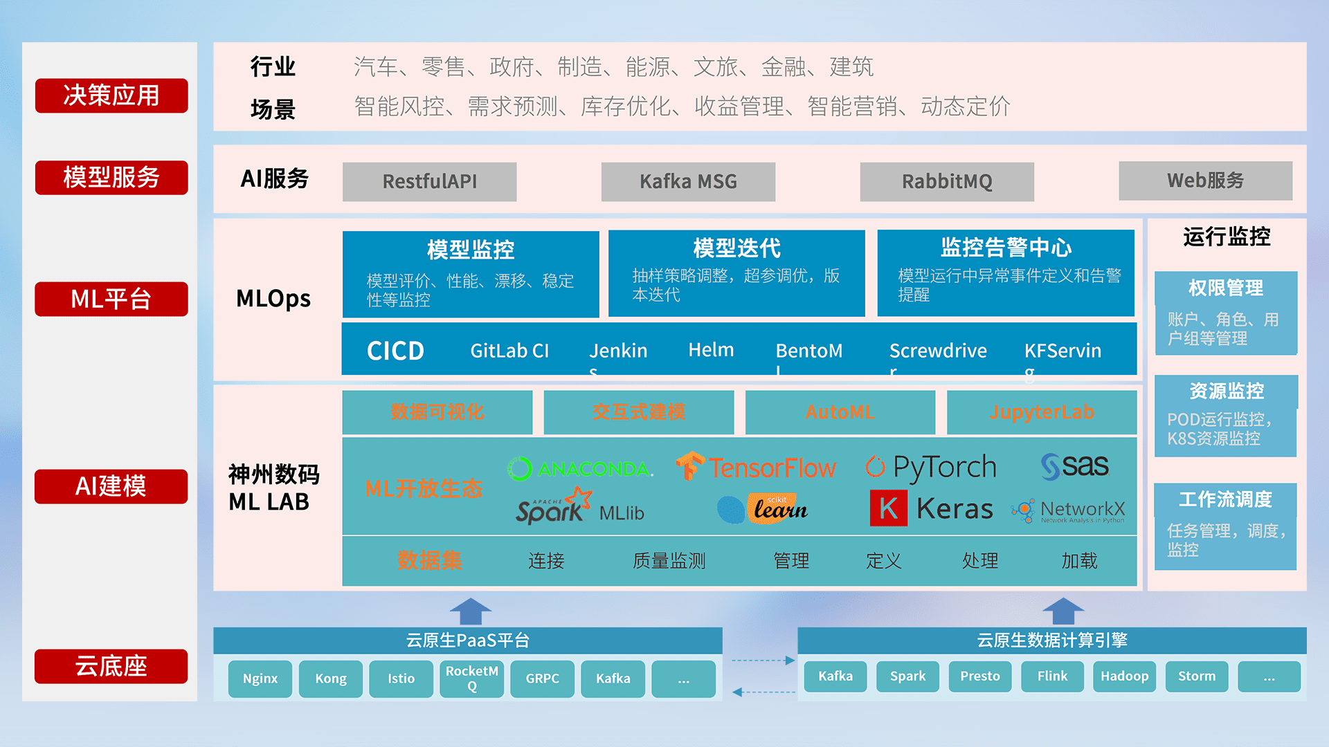 数据+模型双引擎驱动,,面向智能服务场景,,,快速灵活利用AI技术,,,,支持业务决策,,,助力企业智能化转型破局。。。